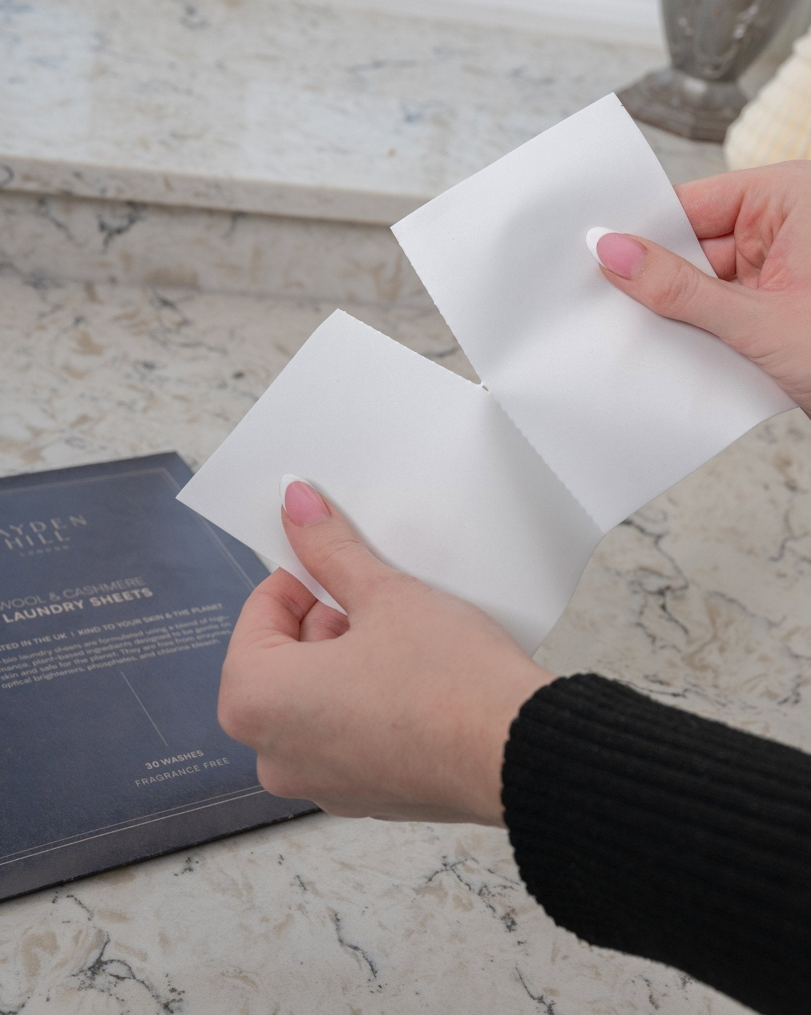 Hayden Hill Laundry Sheets are free from enzymes, optical brighteners, phosphates, and chlorine bleach. This makes them a thoughtful choice for sensitive skin, delicate fabrics, and those looking to reduce unnecessary chemicals in their laundry routine.
